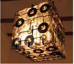 Homenaje a las cintas que nos han acompañado en los 80s y constituyen el símbolo de una generación. Aprovechando las propiedades estructurales, se crea una caja lámpara ,hecha integramente con cassetes y bridas. Lámpara que tamiza la luz dando unos tonos muy cálidos y con la que puedes jugar cambiando los cassettes por los tuyos propios y escuchandolos tambien.