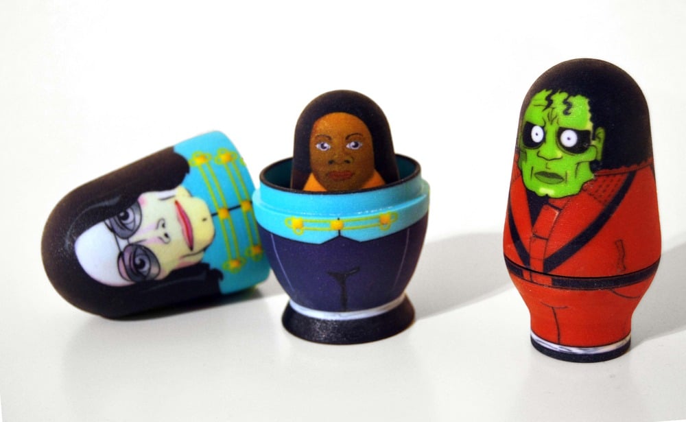 Designed as traditional matryoshka dolls (which have smaller versions hidden inside progressively getting smaller as you go through the layers), King of Pop chronicles different iconic looks that Michael Jackson had throughout his career.