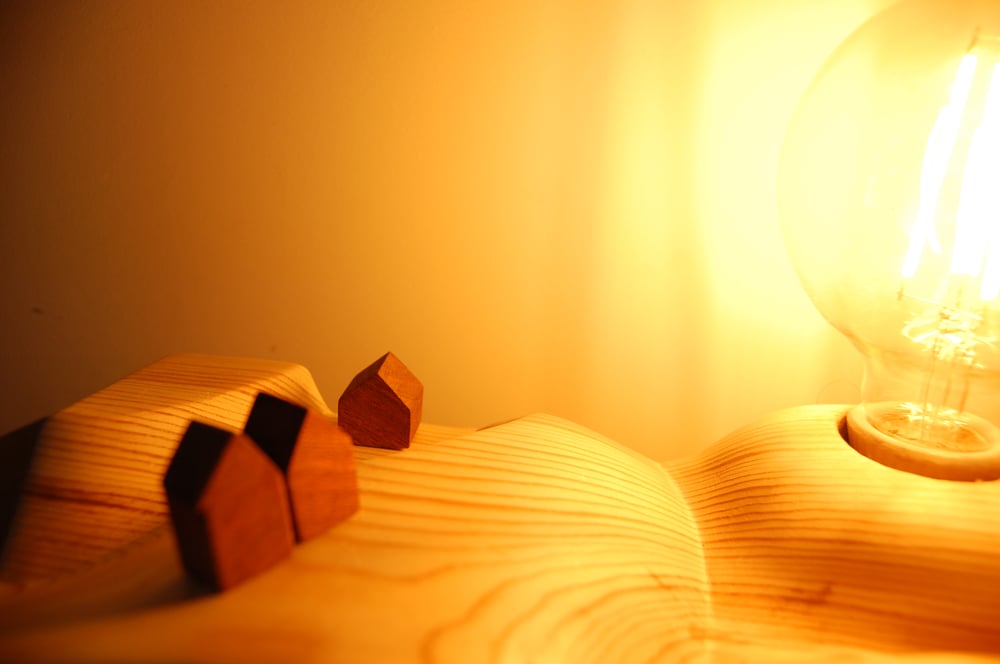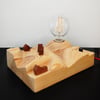 The Sunset Lamp gently enlightens your space providing the distinct warm mood of the sunset. The landscape of slopes and valleys, reminiscent of a typical Spanish village, is conceived by the natural texture of the wood, whose grain accentuate the topology of the piece. This landscape is lit by the "Sun" represented by light bulb controlled by a potentiometer that allows to fine-tune the light intensity to your liking. This soft warm lighting creates an interplay of light and shadow on the undulating form and offers infinite variety of different points of view to enjoy and appreciate the natural beauty of its lovingly handcrafted wood. The lamp base is made of pine wood, the houses of linden wood and cable of red twisted wire.